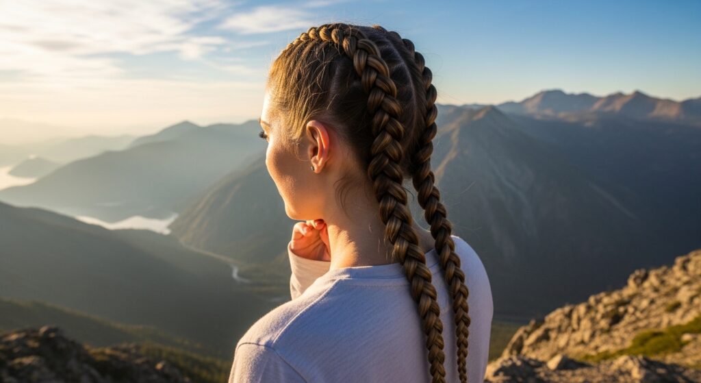 6. Double Dutch Braids: Not just for the gym! These braids start at the crown and keep every strand in place for hours. They’re adorable and functional.