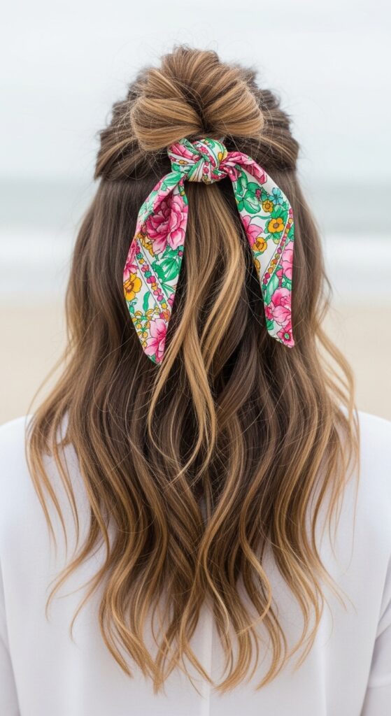 6. The Scarf-Accented Half-Up Hairstyle