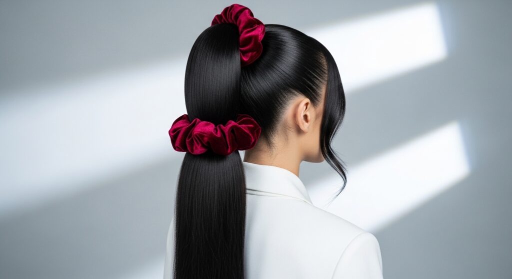 The Sleek & Straight Ponytail with a Statement Scrunchie