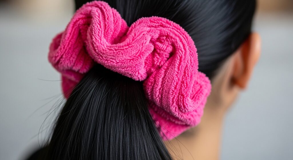 Not all scrunchies are created equal, and the material defines the vibe. Velvet screams fall, grunge, and luxury. Satin is sleek, gentle on hair, and perfect for a more refined or nighttime look. Silk (or silk-like fabrics) offer beautiful prints and a lightweight feel. Cotton or knit scrunchies give a casual, everyday, sporty feel. Don’t be afraid to mix textures and sizes—a giant scrunchie makes a statement, while a thin, delicate one offers a subtle nod to the trend.