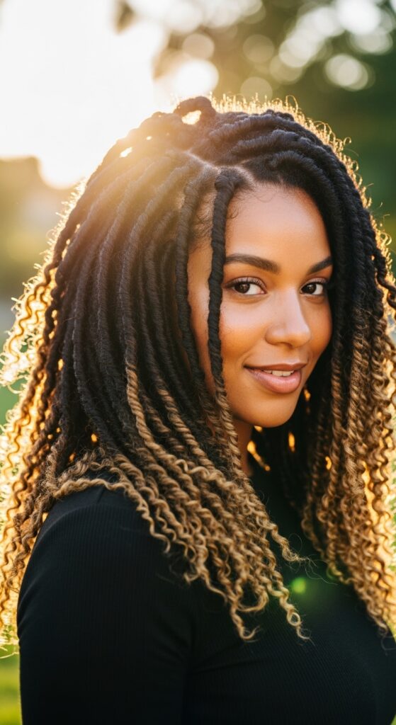 This style ties into the “glitchy glam hair” trend, where unexpected colors and texture come together for a futuristic look. Just remember to use color-safe products to keep your coils moisturized and vibrant. Trust me, the compliments will be endless.