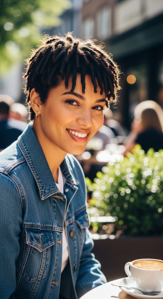 Short hair does not mean you miss out on finger coils. In fact, a pixie cut with finger coils is a total showstopper. The coils add texture and volume to short hair, making it look full and lively. It is a low-maintenance but high-impact style.