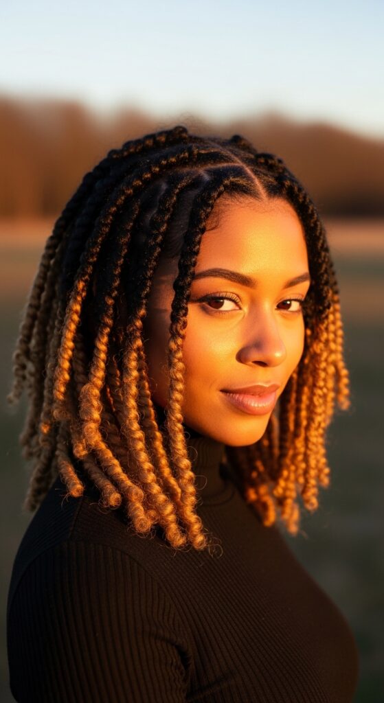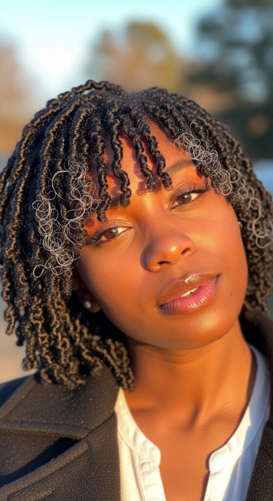 This is also a great way to incorporate the “quiet luxury bob” vibe if you are working with shorter hair. The clean line of the part contrasts beautifully with the texture of the coils, creating a look that is both modern and timeless. Perfect for a day at the office or a dinner date.