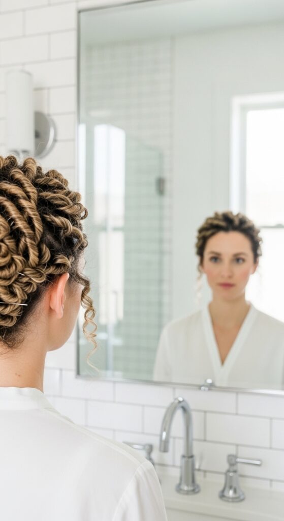 This is my go-to for lazy Sundays or when I wake up with second-day coils that need a quick fix. Just gather your hair loosely, twist, and secure. It is forgiving, cute, and takes exactly thirty seconds. A total lifesaver.