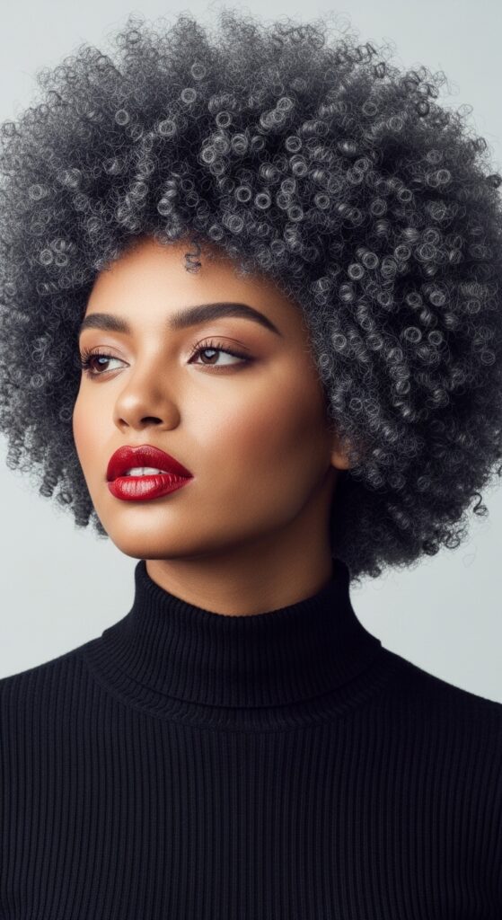 Embracing natural or dyed gray can be stunning. For a uniform look, a solid, dark graphite gray is powerful and sleek. It reads as a cool, dark charcoal rather than “old” gray.