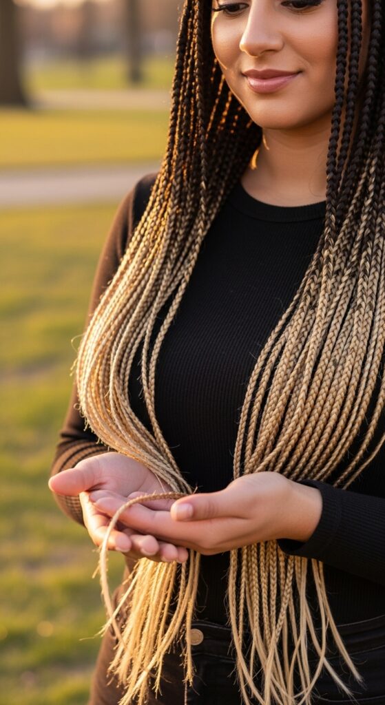 This is great for protective styles like braids or twists, where the blonde tips become a fun accent. It feels playful and low-commitment compared to an all-over lightening.
