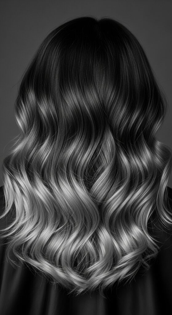 Yes, silver can work for us! The trick is a smoky, graphite silver ombre that starts from a dark charcoal gray at the roots. This gradual transition prevents any harsh line against your skin.