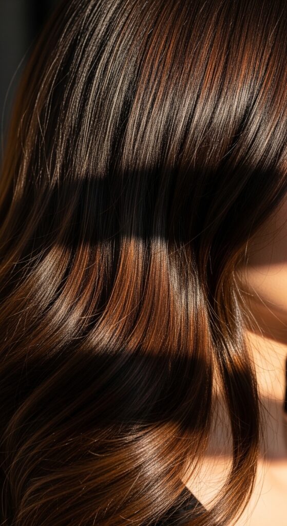 It’s rich, warm, and has a vintage glamour feel. This color looks exceptionally beautiful on long, layered hair, where the different tones can dance and play with each other.