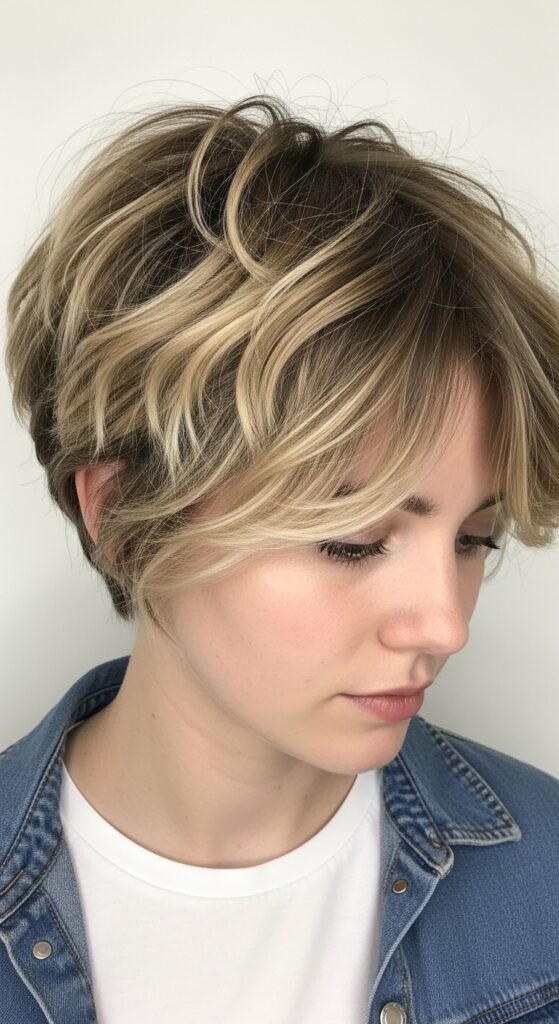 Who says short hair can’t be romantic? This style uses soft layers, wispy bangs, and a gentle taper to create a feminine, airy feel. The texture is touchable and light, not sharp or severe.