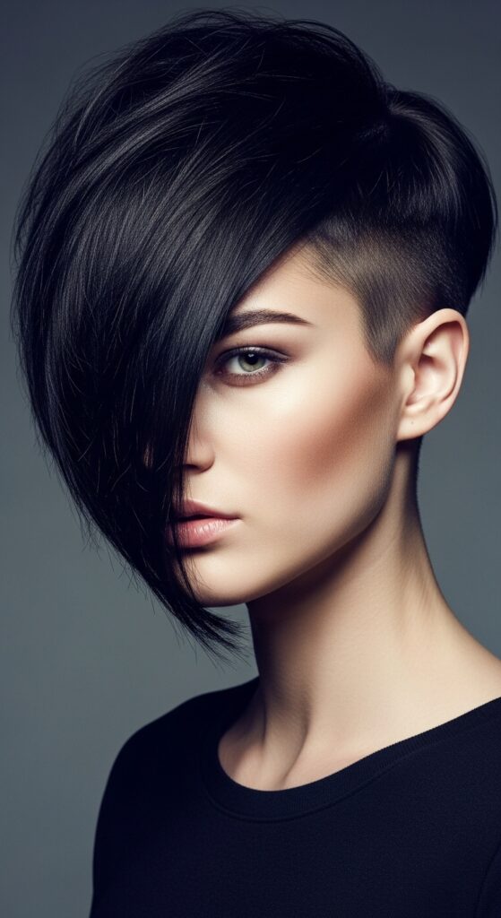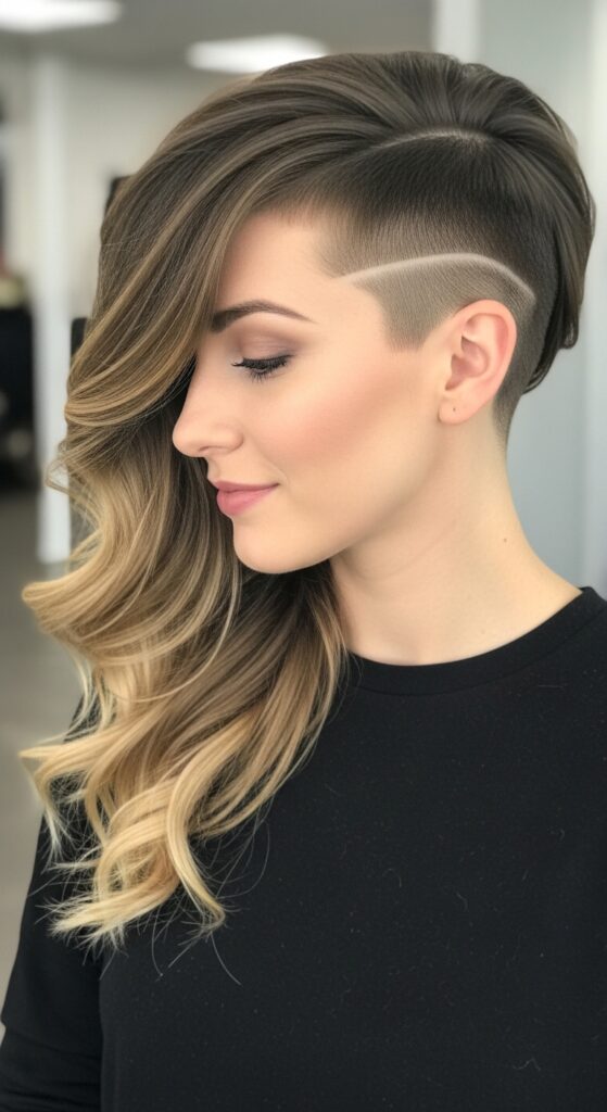 This style is all about the reveal. At first glance, it might look like a longer, textured pixie. But when you sweep the hair to the side, it exposes a shaved or closely undercut section underneath.