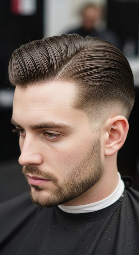 This cut gives you a lot more to play with on top. The length allows for more styling options: you can slick it back, sweep it to the side, or add more texture. The sides and back remain tightly tapered for that clean contrast.