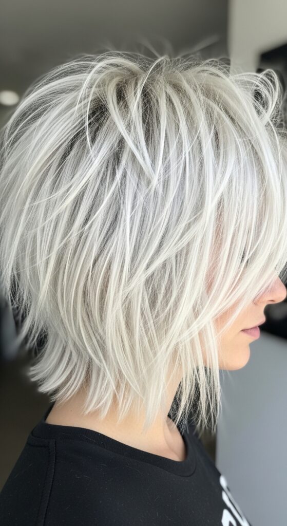 In a bright platinum or silver, it leans into the glitchy glam hair trend—a little futuristic, a little undone. It’s perfect if you want a style that never looks too perfect or over-styled.