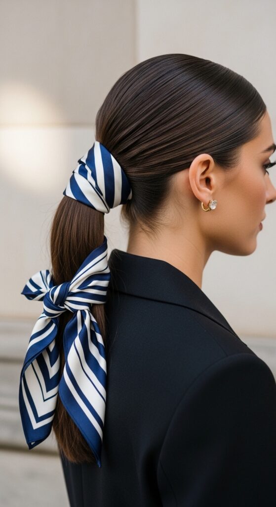 Elevate a basic ponytail instantly with a silk scarf. It adds a pop of color and a touch of that old money hair aesthetic—think timeless and chic. It protects your hair from friction, too.