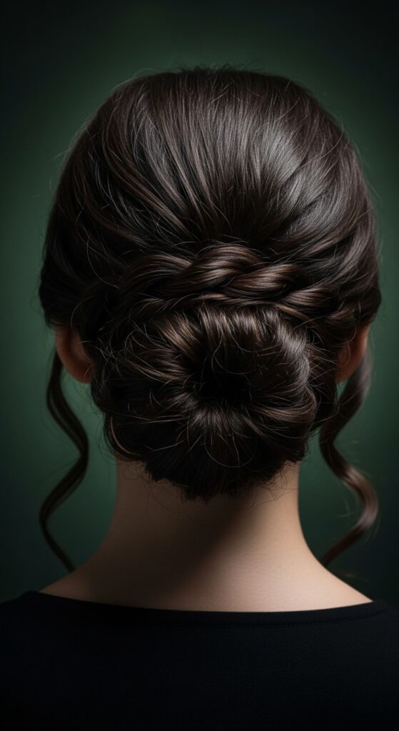 - Wrap the twisted sections around the base of the bun and pin in place.
