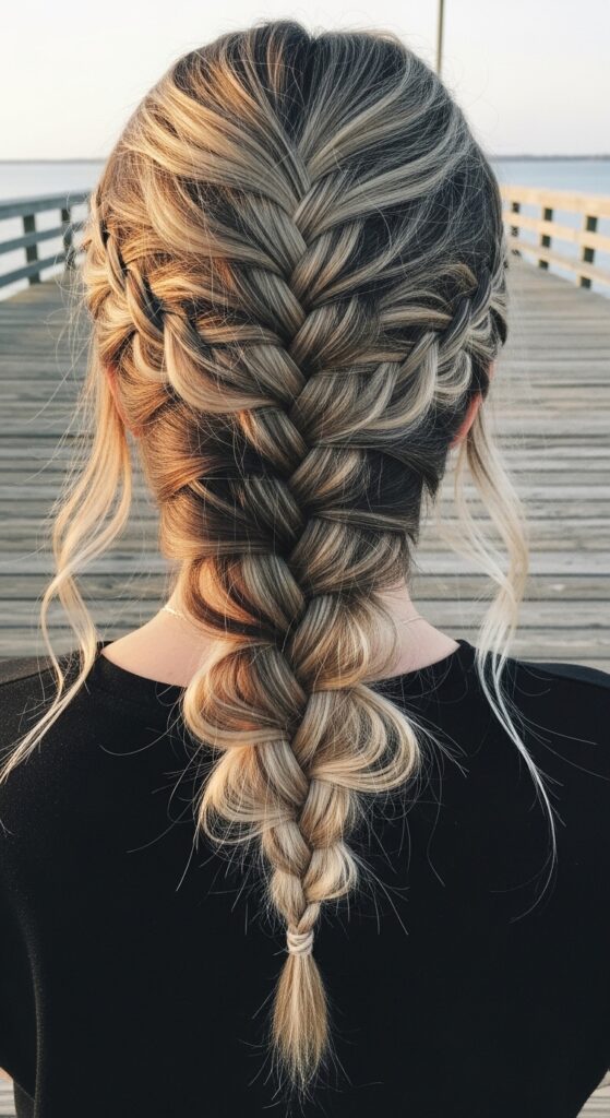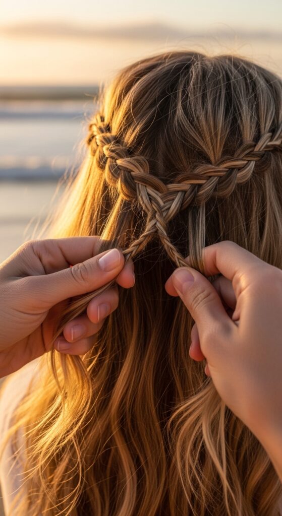 A fishtail looks complicated but is just a matter of patience. It’s an elegant, beach-ready style that holds up against wind and humidity. Practice this once and you’ll have it for life.