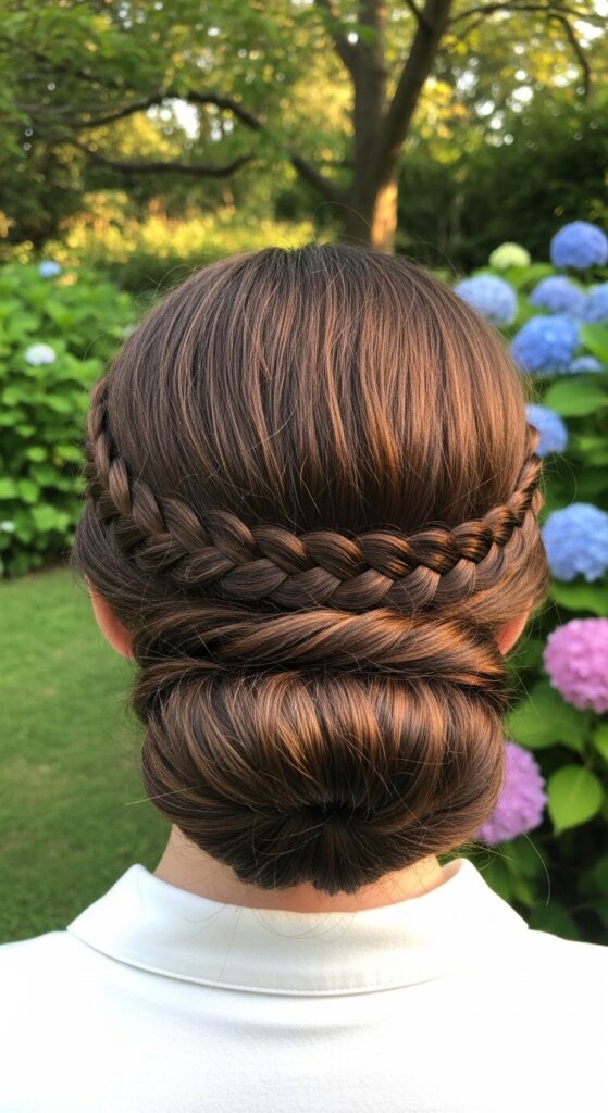 This combines two easy elements for a look that seems complex. The braided headband keeps hair off your face, and the low bun is sleek and tidy. It’s perfect for a hot day when you want to feel polished.