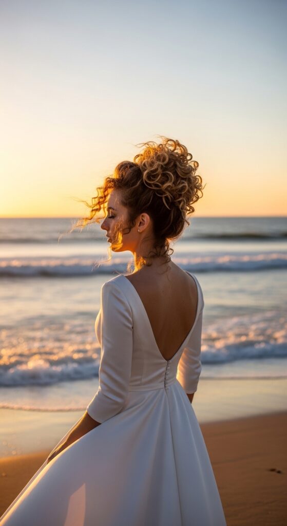 - Perfect for: Beach weddings, brides with natural curls, and a carefree, joyful vibe.