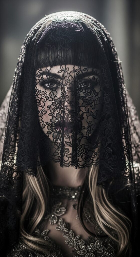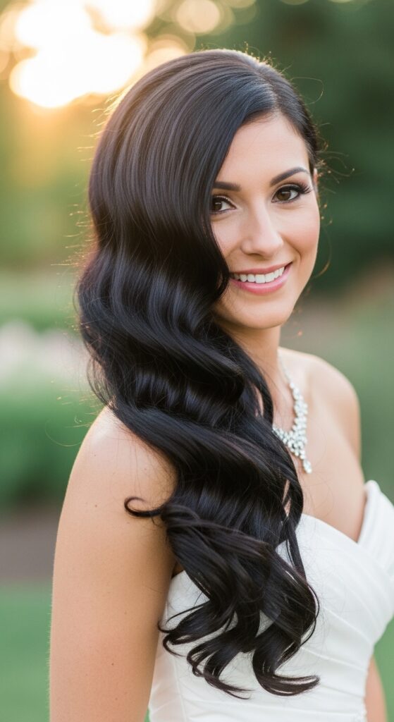 Style it with volume at the roots and defined waves. Pair it with a dramatic, maybe even black-tinged or lace-edged veil for a look that’s utterly unforgettable and deeply personal.