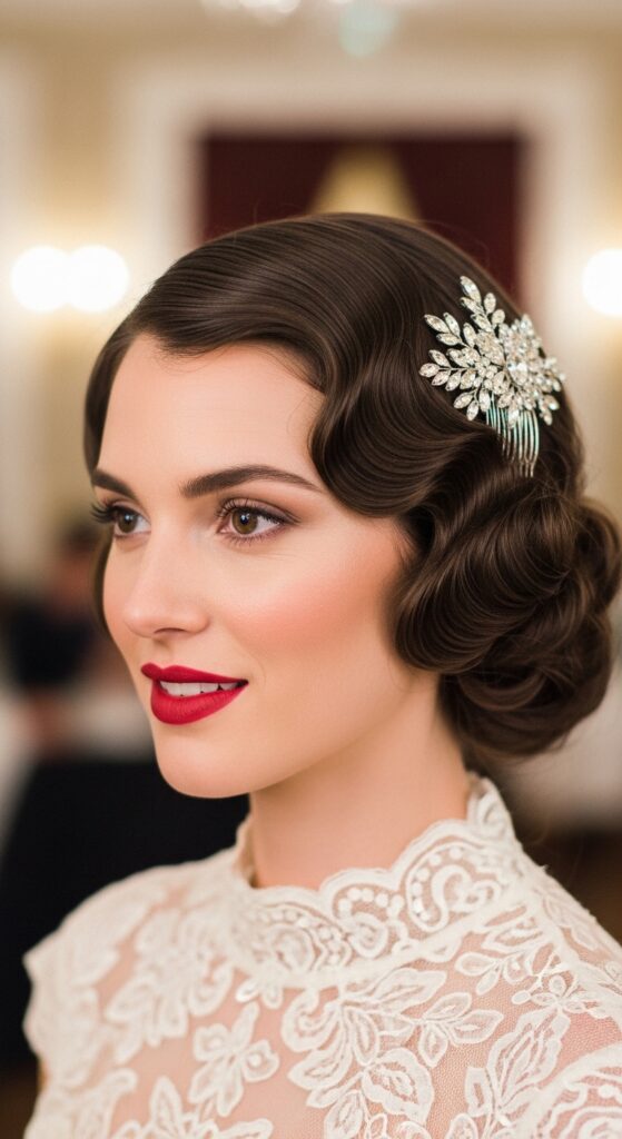 This is not a last-minute choice. It requires a stylist who specializes in vintage techniques. Pair it with a simple, sheer veil or a stunning art deco hair clip for full effect.