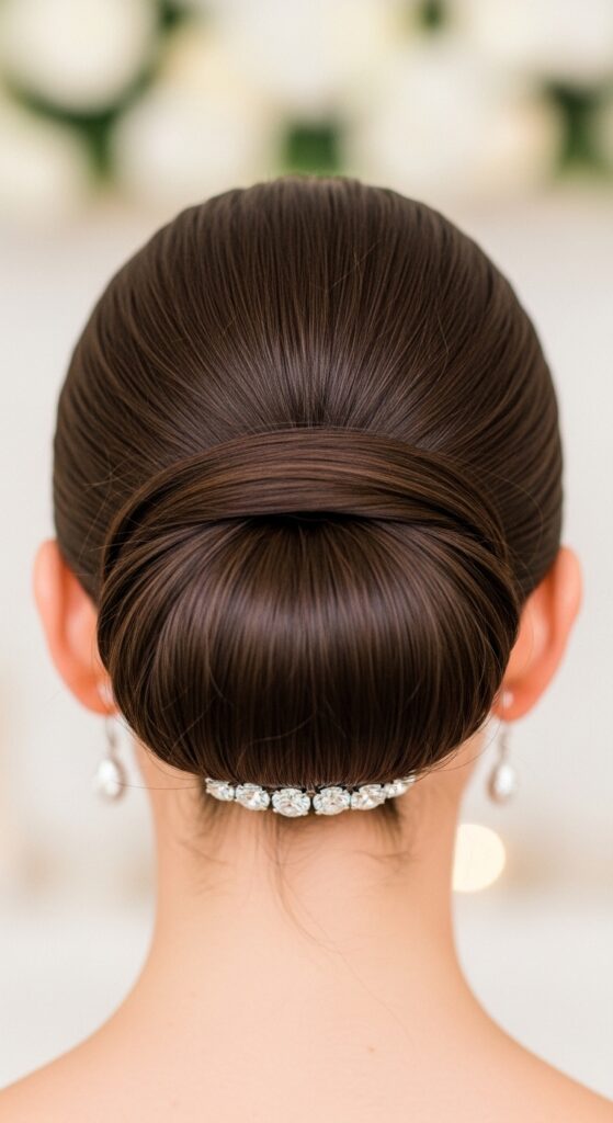 You can never go wrong with a classic low bun. It’s soft, elegant, and works with every single veil style. This is the ultimate “old money hair” move for the aisle—understated and incredibly chic.