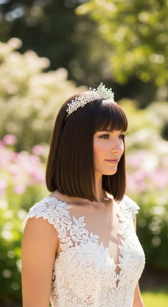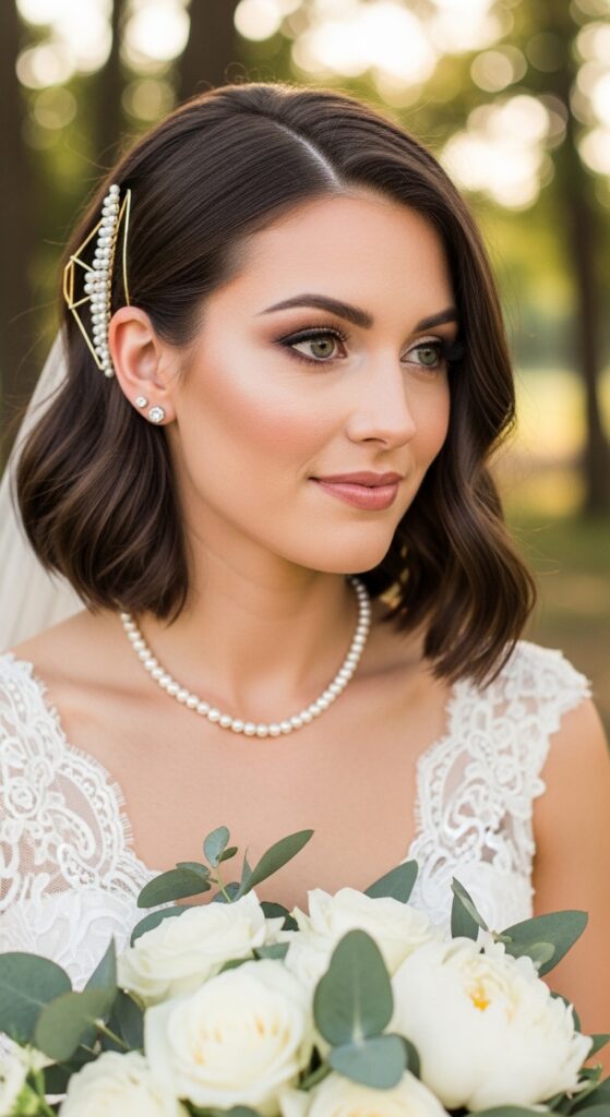 Short-haired brides, this is your moment. The quiet luxury bob is sharp, polished, and screams modern elegance. It’s all about a perfect, blunt cut and supreme shine.