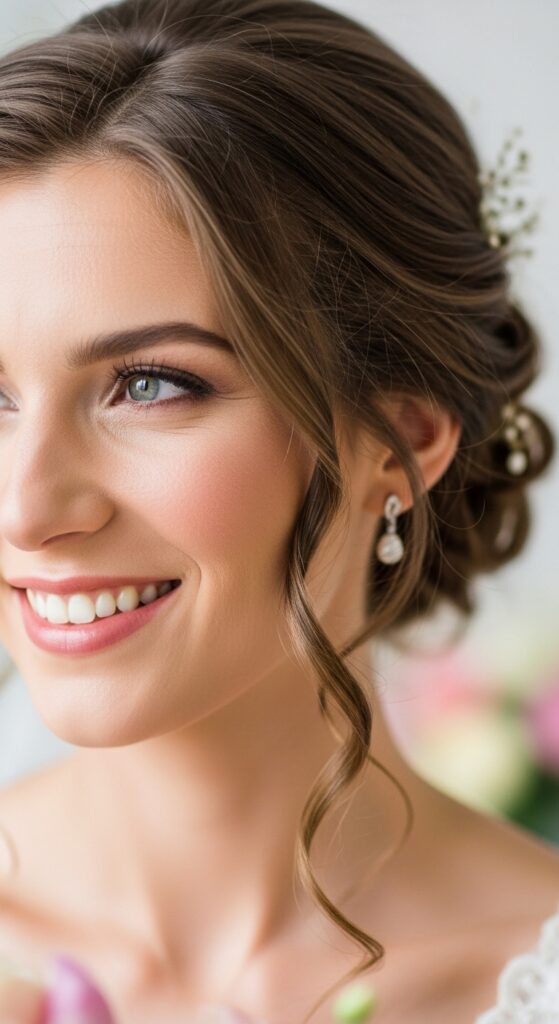 Elevate it by adding a twist or braid around the crown section before pinning it back. This adds detail and keeps it from looking too casual. It’s a gorgeous frame for a blusher veil.