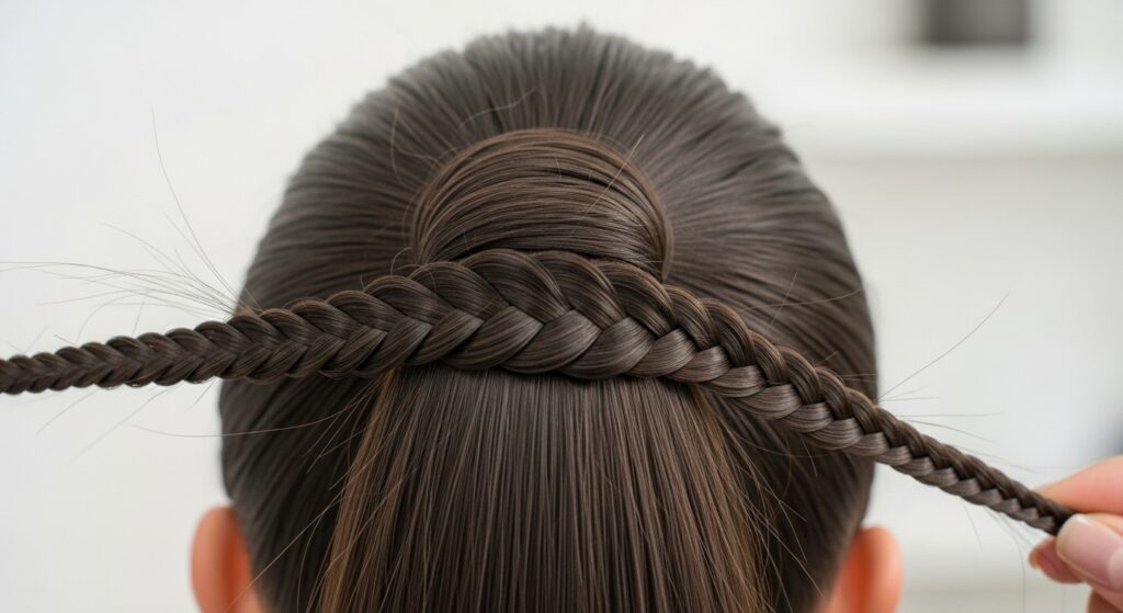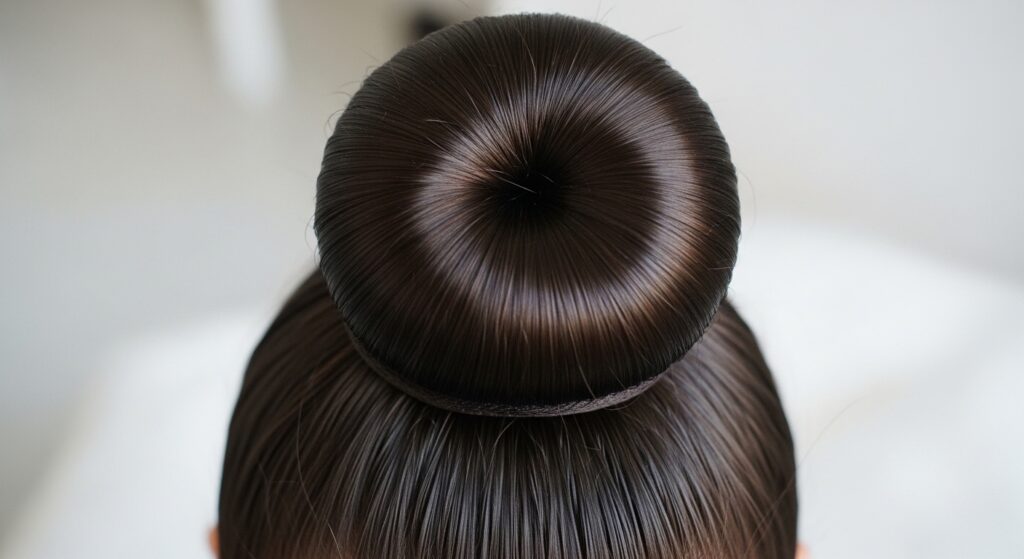 Combine two classic styles. Create a high ponytail and thread it through a bun donut. Spread the hair evenly over the donut and secure with a tie. Then, use the remaining tail (or a separate section) to wrap around the base of the bun, hiding both the donut’s edge and the hair tie for a flawless, ballerina-inspired look.
