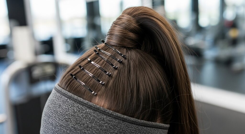 For the gym or a run, use a coated elastic that grips well. Do a tight classic wrap and secure it with criss-crossed bobby pins for extra hold. You can also use a second, smaller elastic to secure the very end of the wrap against the ponytail for unbeatable security.