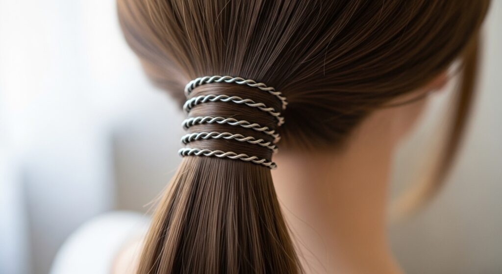 If your hair tie is particularly stubborn or you want a more dramatic look, try a double wrap. Use a slightly larger section of hair for your first wrap, pin it, then take a second, smaller section from the opposite side and wrap it in the opposite direction. This creates a criss-cross effect that’s both secure and stylish.