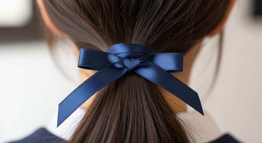 Use a beautiful ribbon as both the tie and the wrap. Start by tying your ponytail with the ribbon (like you would with a regular tie). Then, use the long ends of the ribbon to wrap around the base multiple times, finishing with a delicate bow or a simple knot tucked underneath.