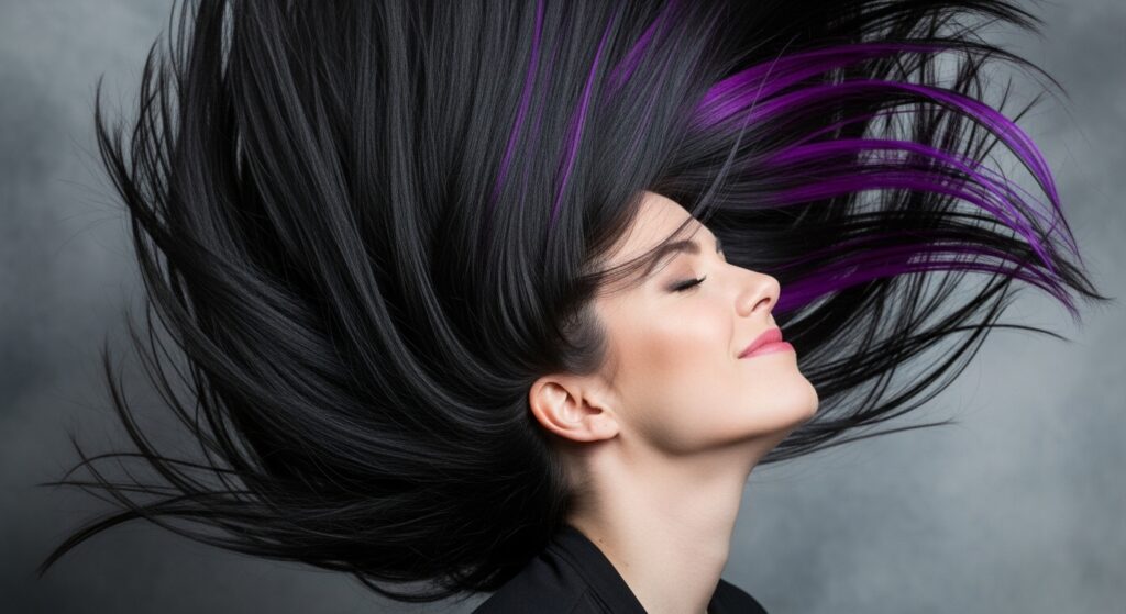 Jet black hair exudes sophistication and edge, but adding hidden pops of color—like deep burgundy or electric blue underneath—can take it to the next level. This look is perfect for those who want versatility: keep it sleek and professional during the day, then reveal a bold surprise for evening events.
