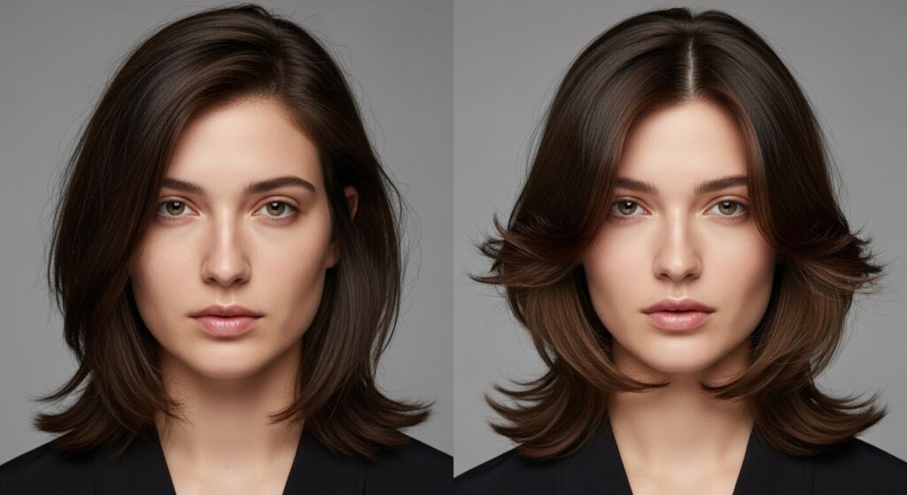 This is the easiest, zero-commitment trick in the book, and it can completely alter the perception of your haircut. We are creatures of habit, and we often wear our part in the same place for years. However, a haircut is designed with a specific fall in mind, and sometimes simply moving your part can redistribute weight and volume in a much more flattering way.