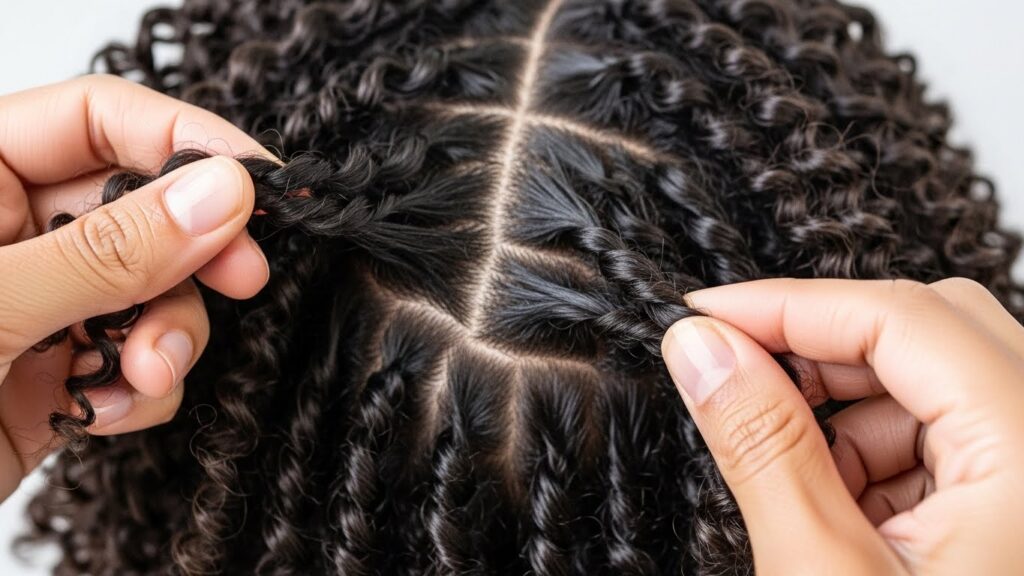 This style works with your hair’s natural coiling pattern by gently encouraging it into a slightly stretched, clumped formation. It minimizes frizz, maximizes definition, and protects your delicate ends. You can do large twists for bigger waves or smaller braids for tighter, more intricate curl patterns. It’s the perfect way to create a consistent, gorgeous look that honors your texture’s need for moisture and gentle handling.
