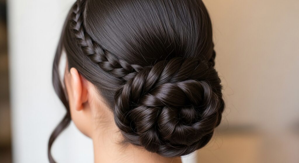 One popular method is to create two large rope twists on either side of your head and then join them together into a low bun at the nape of your neck. Another is to create a single, large twist down the length of a low ponytail before coiling it into a bun. The result is a bun that has beautiful, visible lines and a gorgeous woven effect. It’s perfect for the office, a wedding, or any event where you want to look put-together and chic.
