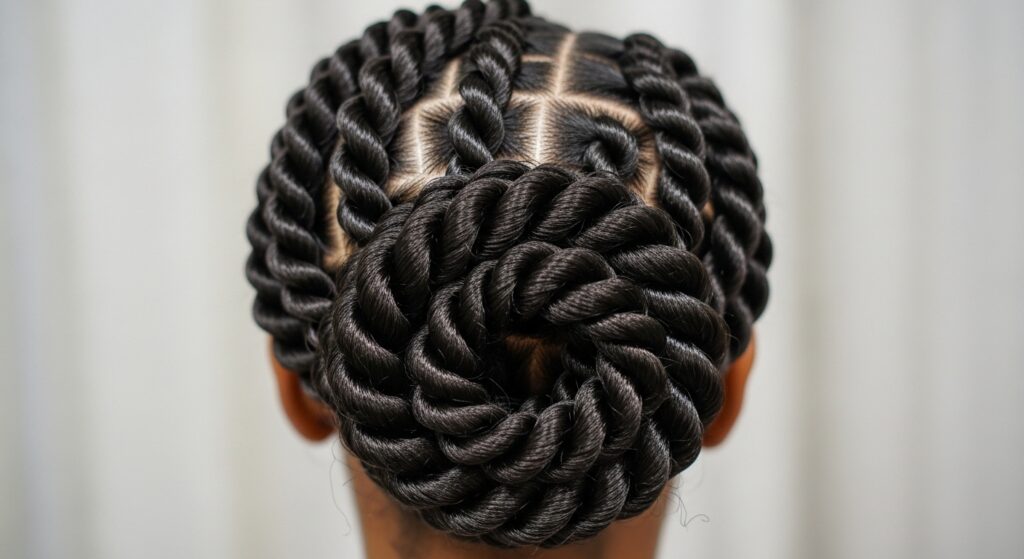 For a more polished and intricate-looking style, the twisted rope bun is a winner. This technique helps to control thicker, blunt ends by weaving them into an elegant pattern. It looks complicated but is deceptively simple to achieve.