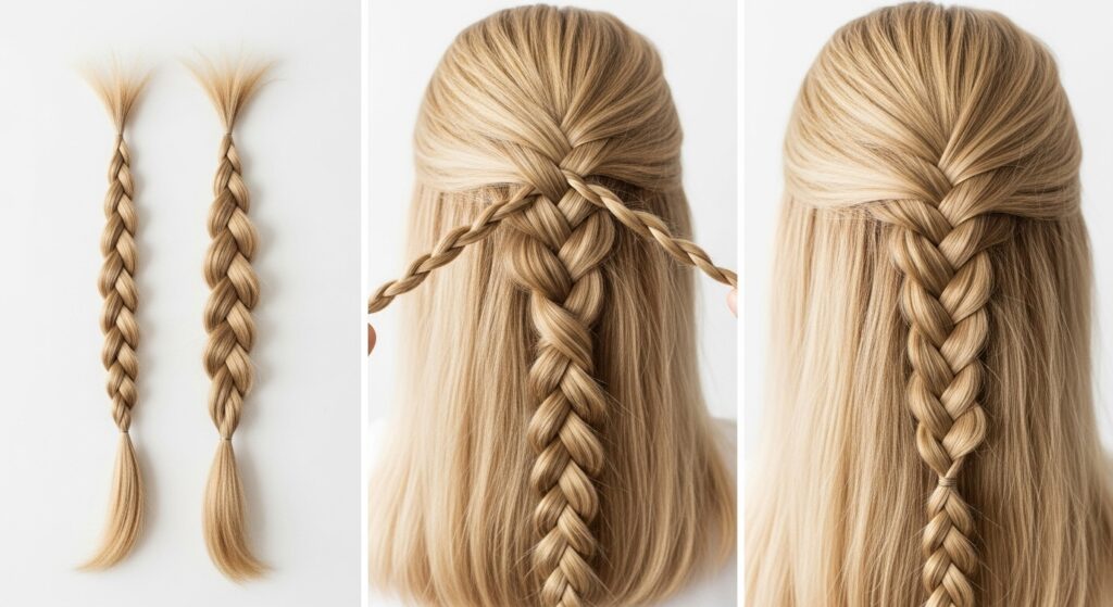 Divide a section of hair (either for a full side braid or a half-up style) into two equal parts. Twist each section individually in the same direction—let’s say clockwise. Now, once both sections are tightly twisted, wrap them around each other in the *opposite* direction (counter-clockwise). This counter-twisting is the secret—it holds the braid together beautifully. Continue to the ends and secure with a small elastic. You can make it tight and sleek or gently pull it apart for a fuller, bohemian look.
