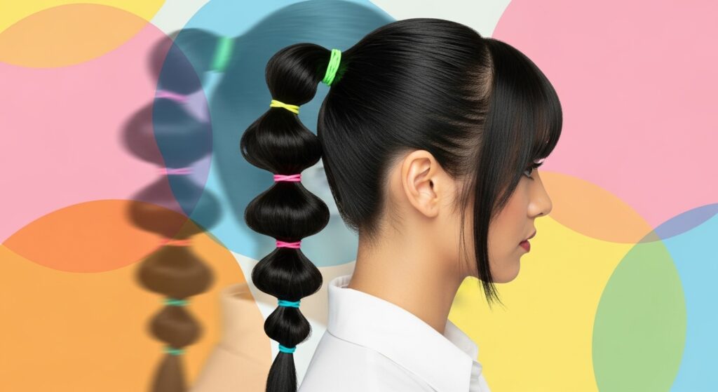 Create a high, mid, or low ponytail and secure it with an elastic. Then, move down a few inches and place another elastic. Continue this all the way down the length of your hair. Now, for the “bubbles”: gently tug on the hair between each elastic to puff it out, creating a bubble-like effect. You can make the bubbles uniform or mix up the sizes for a more organic look. This style is a guaranteed conversation starter!