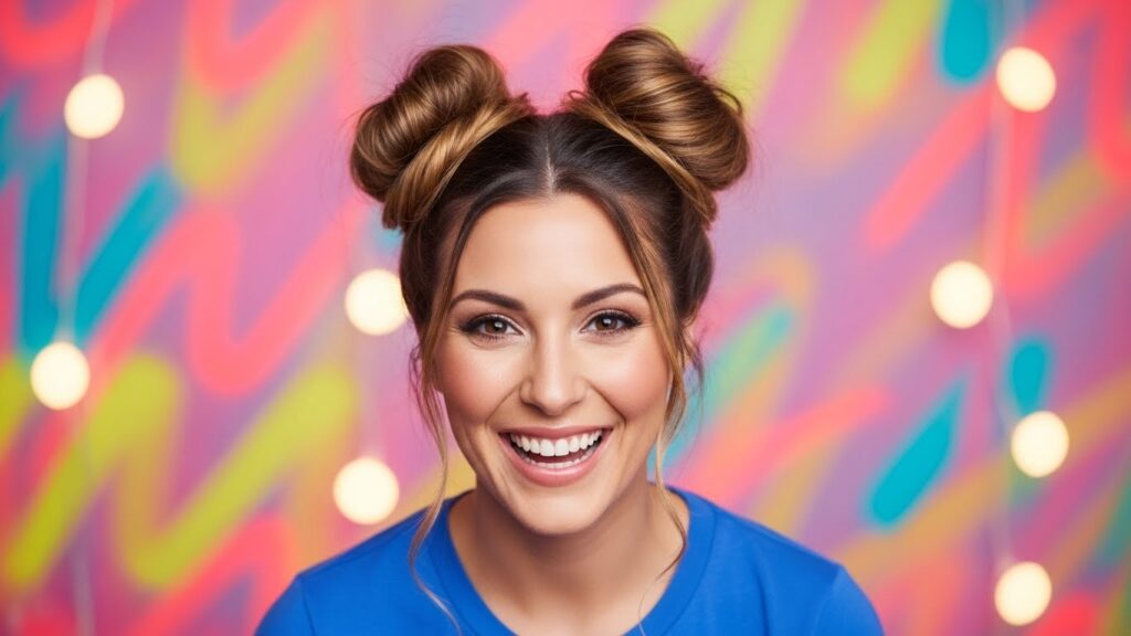 For a fun, youthful, and fashion-forward look, modern space buns are surprisingly versatile in photos. Positioned high on the head, they are visible and add playful height from the front. The side view shows off their rounded shape and any decorative parts (like braids leading into them), and the back view is symmetrical and interesting. This style has a great sense of balance and whimsy and works wonderfully for creative, energetic, or festival-themed photoshoots. To avoid a childish look, keep the buns slightly textured and not too perfectly round.