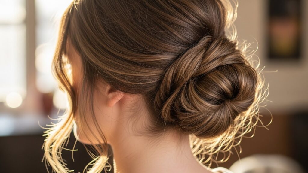 Don’t let the word “messy” fool you—this style is a masterpiece of intentional texture. The low messy bun sits gracefully at the nape of the neck, creating an elegant silhouette from the side and a captivating interplay of loose tendrils and soft volume from the back. It’s a favorite for a reason: it adds a touch of romantic effortlessness while ensuring there’s no “bad side.” The key is to pull out face-framing pieces and wispy strands around the hairline and neck. These catch the light and create movement, ensuring the style never looks flat or severe in photographs, whether you’re captured in profile or looking over your shoulder.
