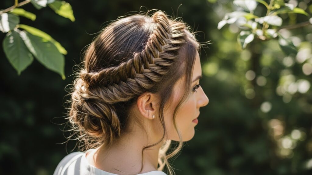 For a truly 360-degree beautiful look, it’s hard to beat a braided crown. This style offers intricate detail and bohemian charm from every single angle. Whether it’s a simple Dutch braid wrapped around the head or a more elaborate fishtail crown, it creates a complete “frame” for your face. The front view is soft and romantic, the side view reveals the beautiful braiding technique, and the back view—where the braids meet or are tucked—is a fascinating focal point. It’s a perfect choice for outdoor or detail-focused photography, as it invites the eye to explore the entire composition of the image.