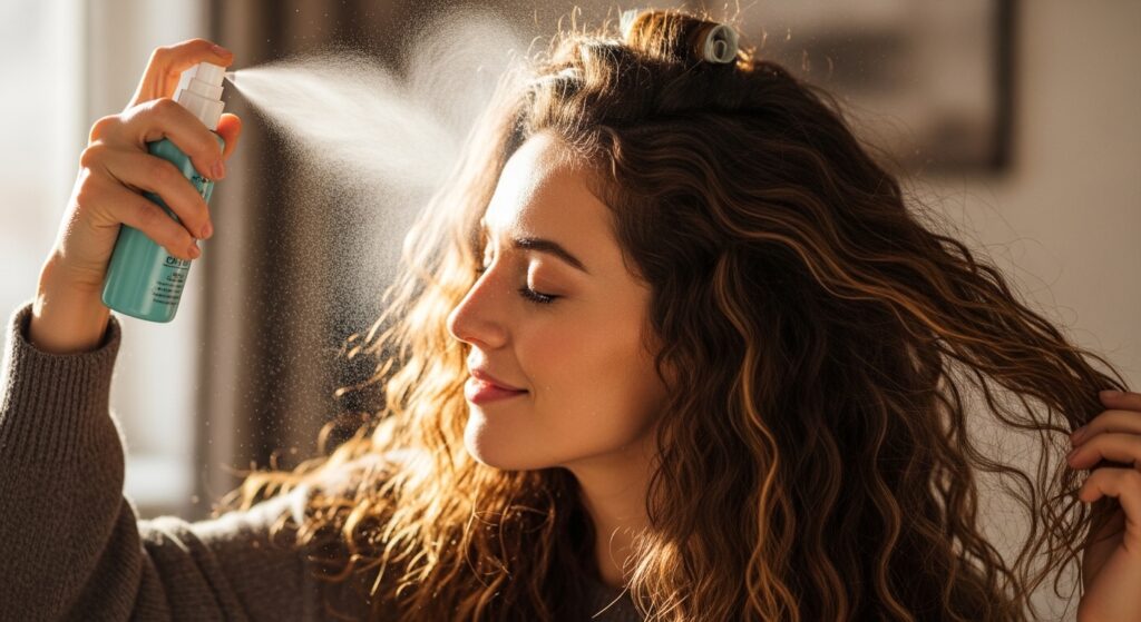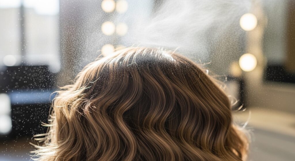 To make your hard work last, a light-hold hairspray is your best friend. Hold the can about 10 inches away and mist all over. Focus on the mid-lengths where friction might cause frizz.