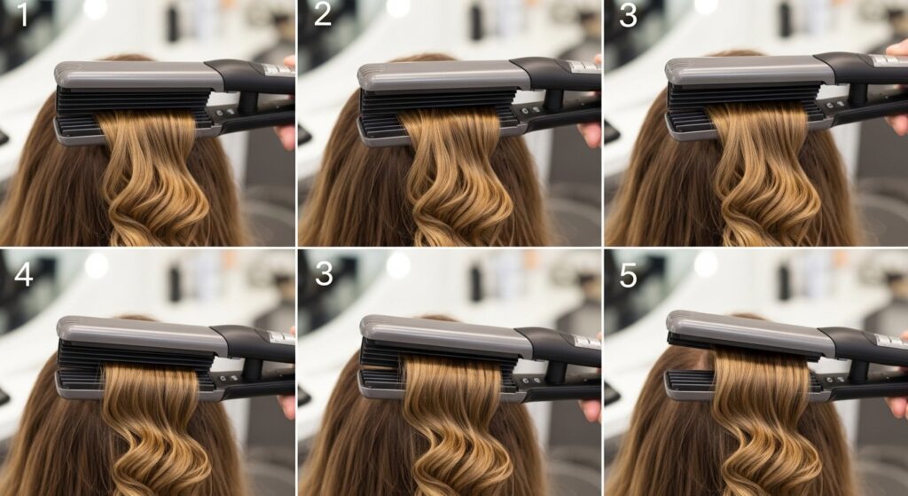 You’ll work from the nape of your neck upward. Take horizontal sections that are about 1-2 inches thick. This ensures the tool can evenly clamp all the hair in that section for a consistent pattern.