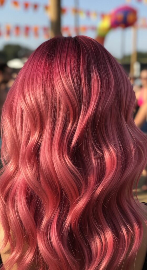 Let the hair be the star. Keep your base makeup fresh and dewy. A wash of pink shimmer on the lids or a creamy pink blush ties everything together without being too themed.