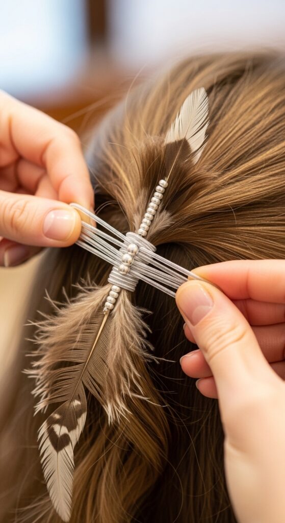 This covers the elastic and makes the feather look like it’s magically sprouting from your roots. It’s the pro tip that elevates the whole look from craft project to festival-ready style.