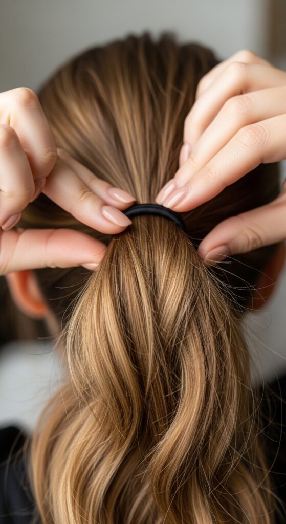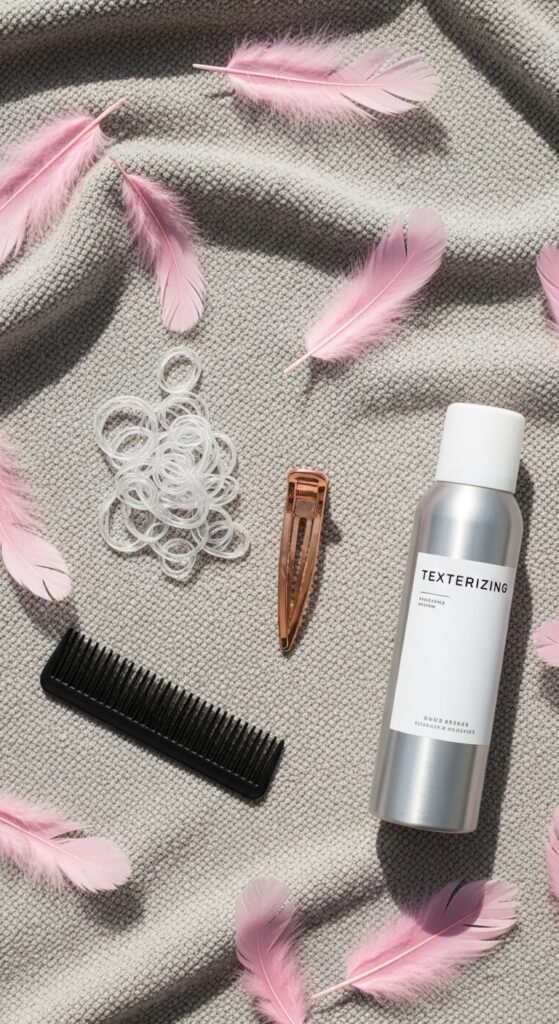 - Texturizing Spray or Dry Shampoo: Gritty texture helps the elastic grip better, especially on silky hair.