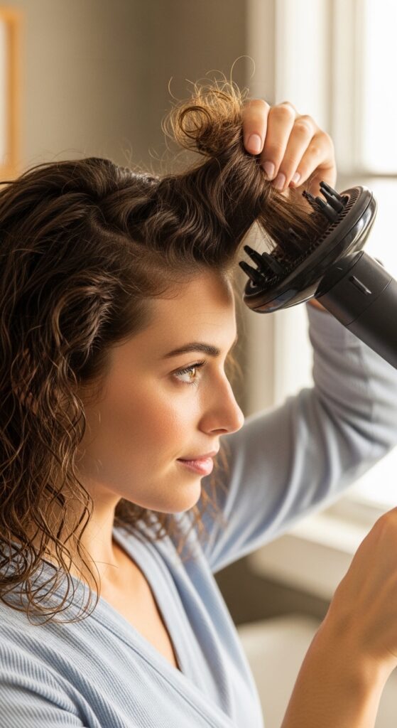Yes, this is the diffuser’s classic use, but with a bounce focus. We’re not just drying—we’re shaping. The goal is defined, springy curls that last for days.