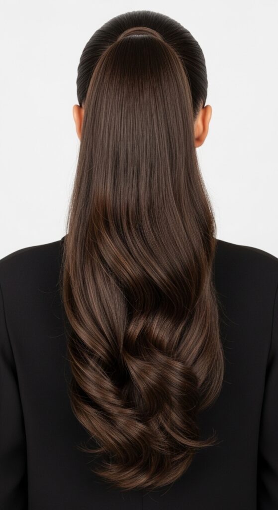 The best ponytails start with a blowout. This gives the tail itself body and creates hidden volume at the crown when you pull it up. It looks polished and expensive.
