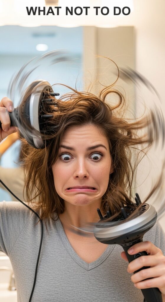 Don’t move the diffuser around while it’s on high heat—this causes frizz. Don’t use it on soaking wet hair; towel dry first. Don’t forget the cool shot! And never, ever rub your hair with a regular towel before diffusing.