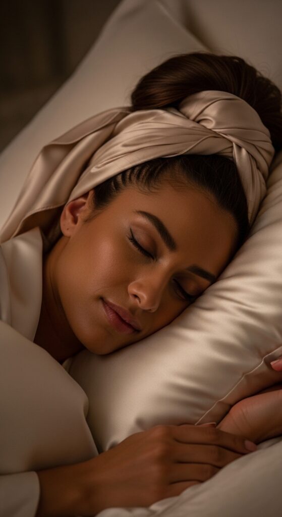 Sleep on a silk or satin pillowcase. Before bed, loosely gather your hair into a very high “pineapple” ponytail on top of your head using a silk scrunchie. In the morning, let it down, flip your head over, and gently shake out the roots.