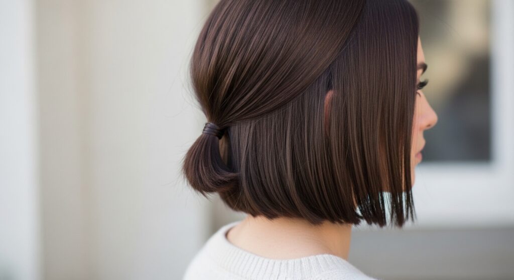 Yes, you can rock a pony with a quiet luxury bob or lob! This “ponytail” is more of a curated gathering of hair, and it’s utterly chic. It’s perfect for showing off a gorgeous haircut while still feeling pulled together.